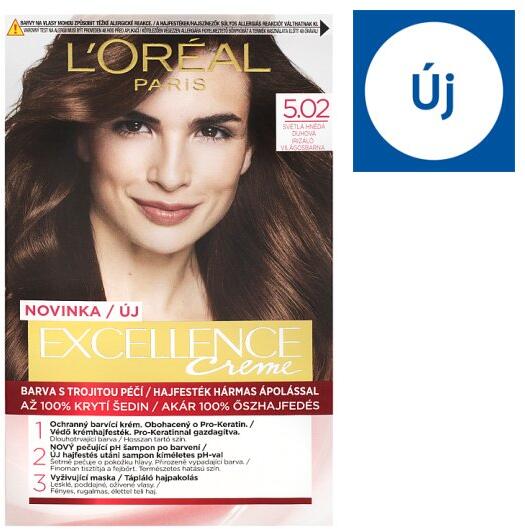 L'Oréal ĽOréal Paris Excellence 5 . 02 Irizáló világosbarna, 72 ml + 48 ml + 12 ml + 60 ml